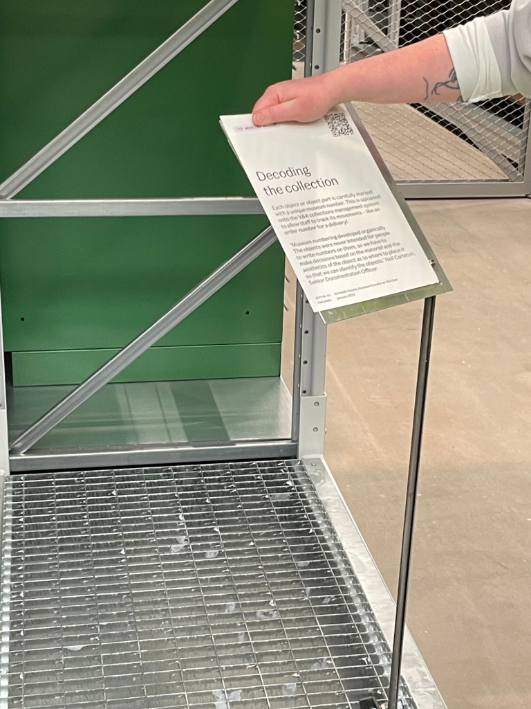 QR codes were identified as the most suitable entry point, but with constraints. they could not be placed on glass, their positioning was limited, and each code had to serve an entire display or level rather than individual objects. The team had little control over how the codes were physically displayed in the space, there would be one QR code on Level 1 only, for instance, and on the remaining floors they would link to an entire storage display rather than individual objects. The solution needed to account for this. They could not be placed on the glass balustrades, which limited positioning options.